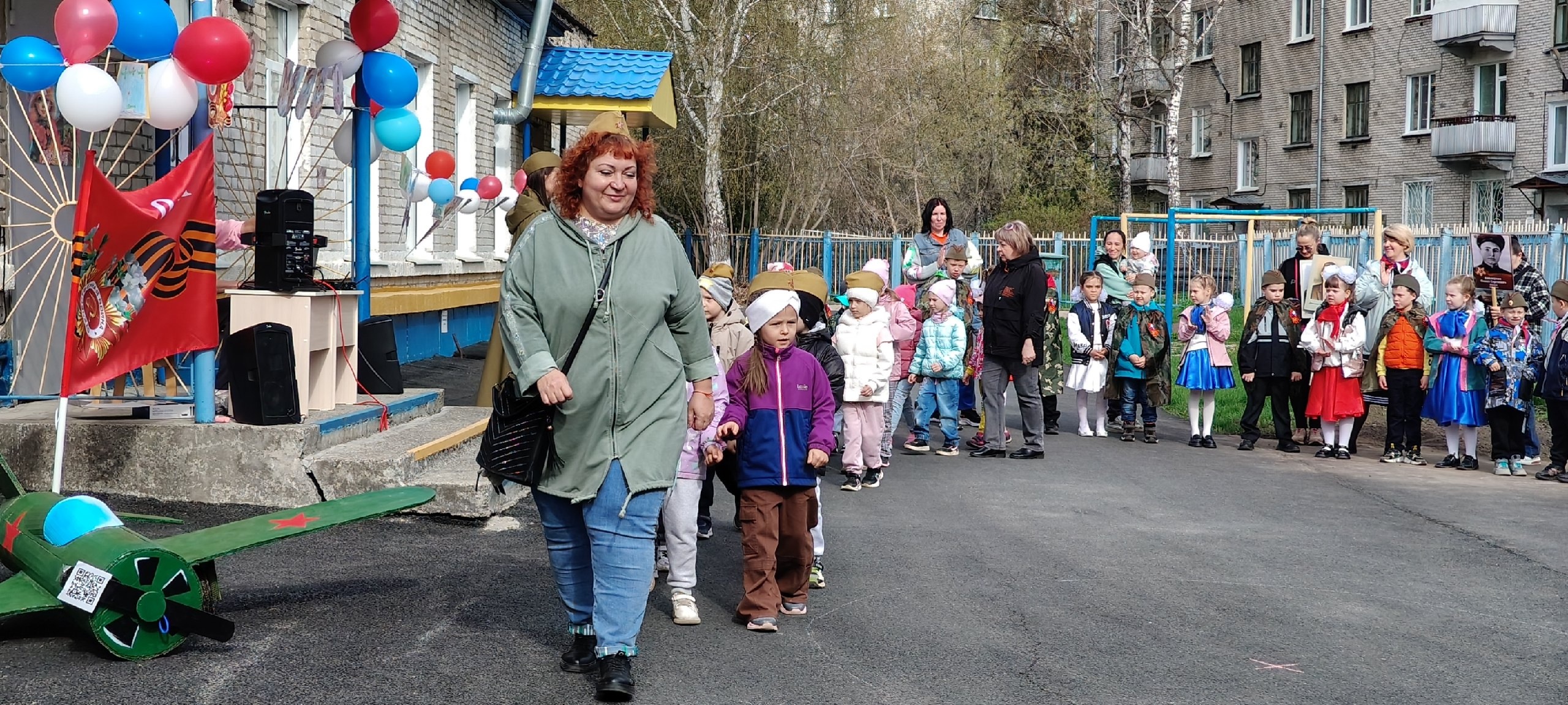 Было организовано шествие Бессмертного полка. С портретами своих героических родственников, прадедушек и прабабушек прошли воспитанники по территории ДОУ.
